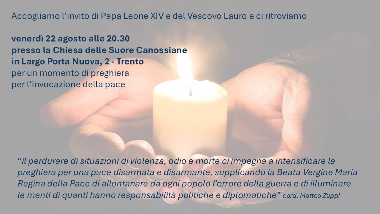 AVVISI PARROCCHIALIDomenica 5 ottobre non sarà celebrata la S. Messa delle 9.00 in S. Maria Maggiore. La S. Messa domenicale delle 11.15 in S. Maria Maggiore riprenderà con domenica prossima, 12 ottobre. Sabato 11 ottobre alle 11.00 in Cattedrale S. Messa in occasione Sabato 18 ottobre a Levico Terme, Festa diocesana della Famiglia. Iscrizioni entro il 10 ottobre. __________________________________________ proposta – Il coro dei ragazzi del Duomo [leggi l’invito e il programma per l’anno pastorale 25-26] |